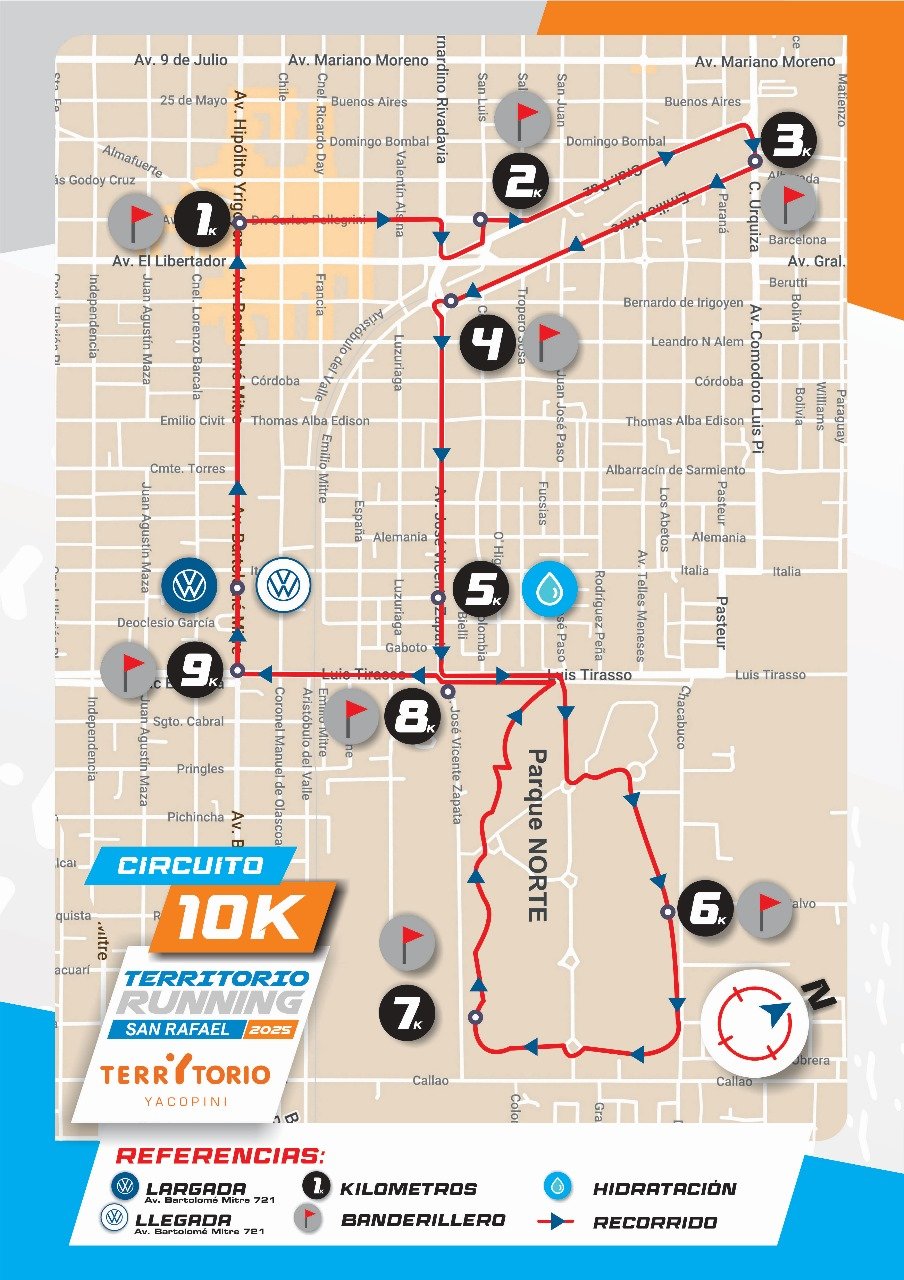 Los circuitos (podés ver los mapas al pie de esta nota) discurrirán por las principales calles de la ciudad sanrafaelina y al correr por ellos los runners visitarán puntos emblemáticos como el Parque Norte o las avenidas Mitre o José Vicente Zapata.
