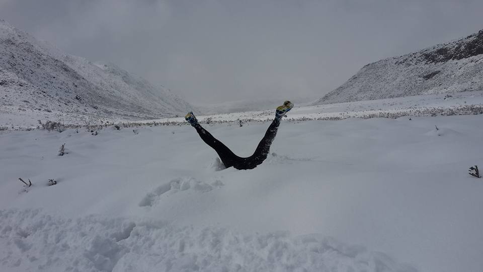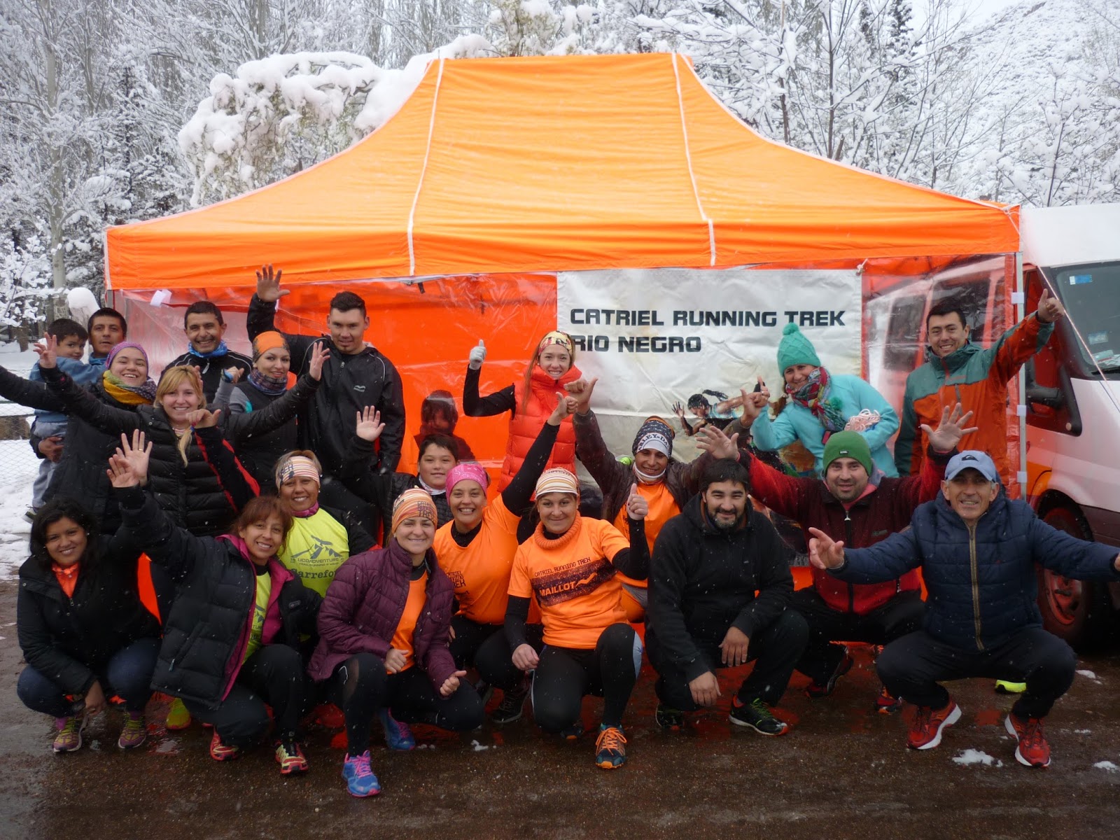 | Los corredores jugaron como niños en la nieve… Foto: Facebook, gentileza de Ricardo Blasco. |