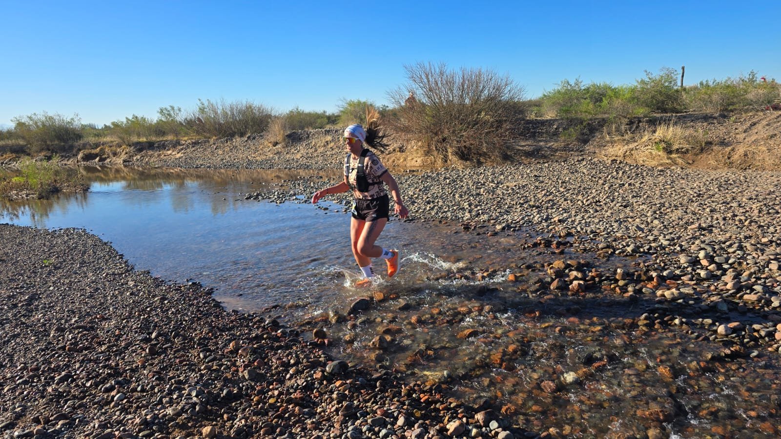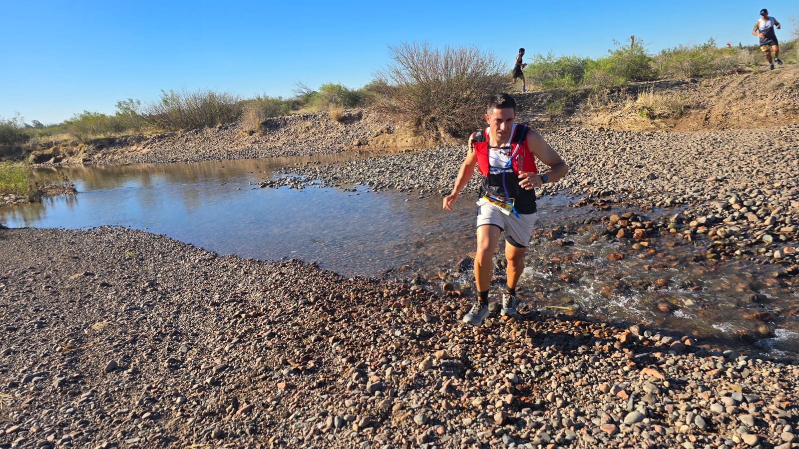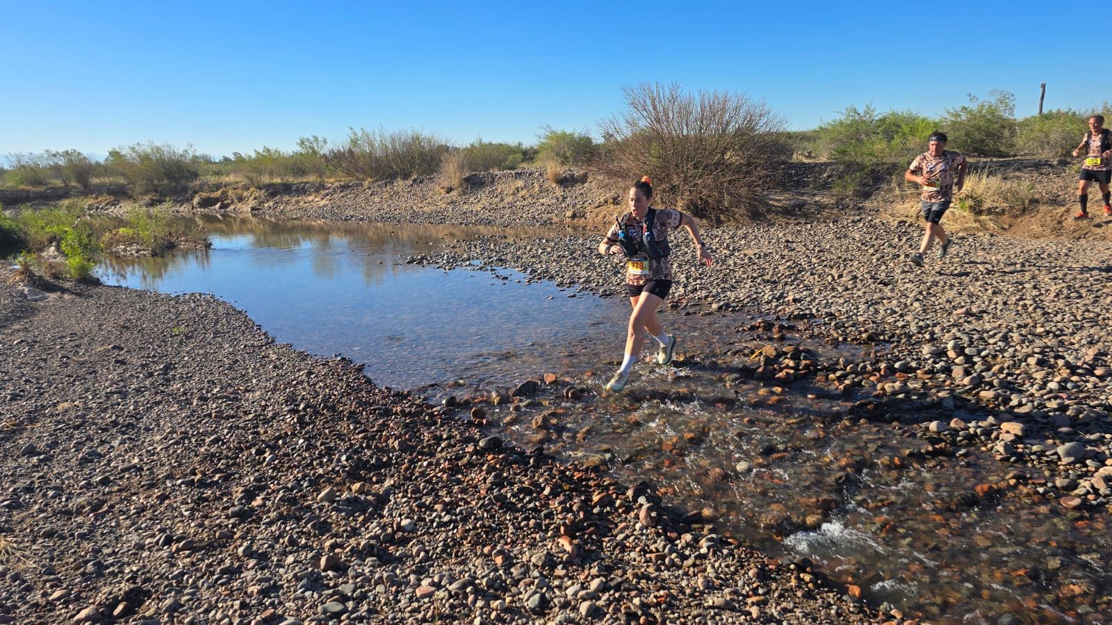 Los runners debieron cruzar algunos brazos del Río Tunuyán.