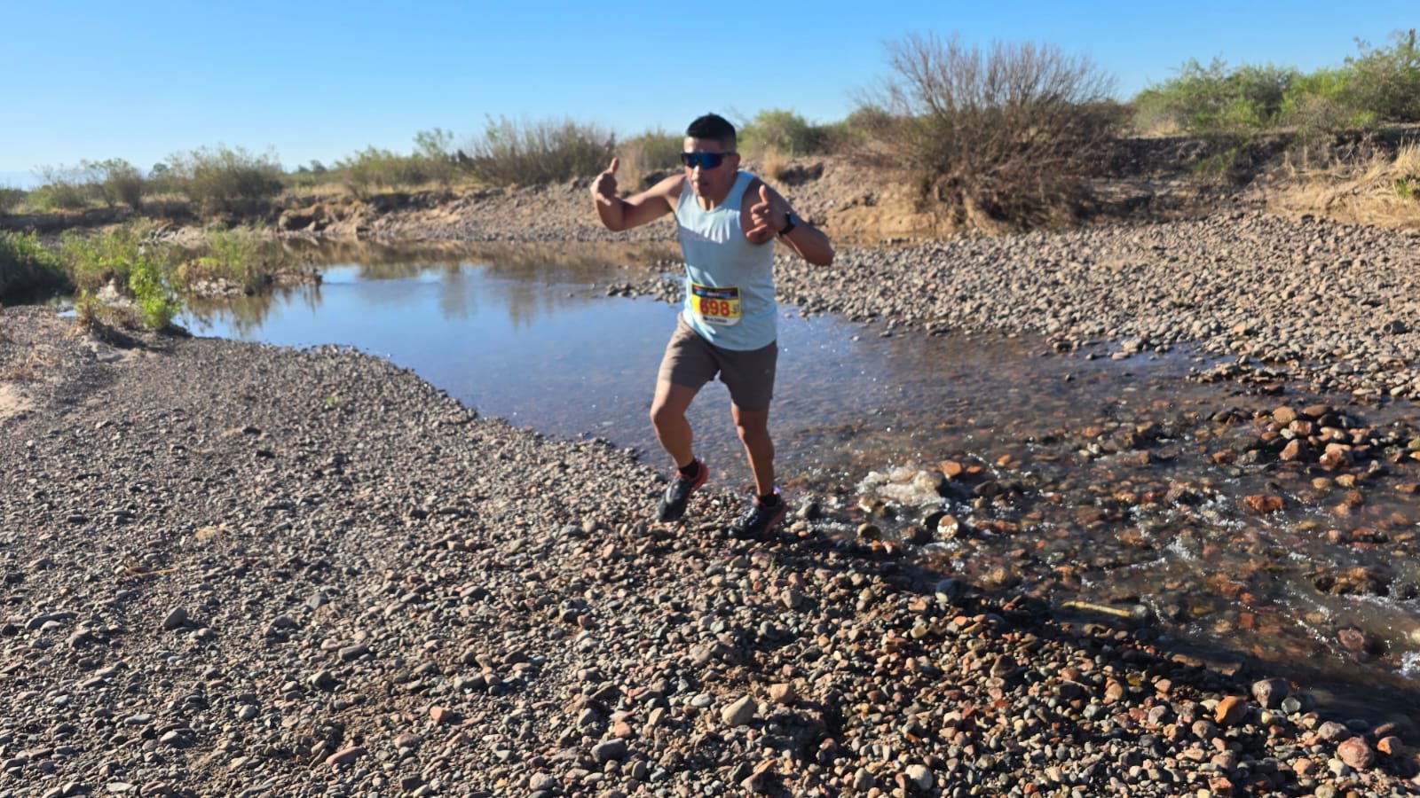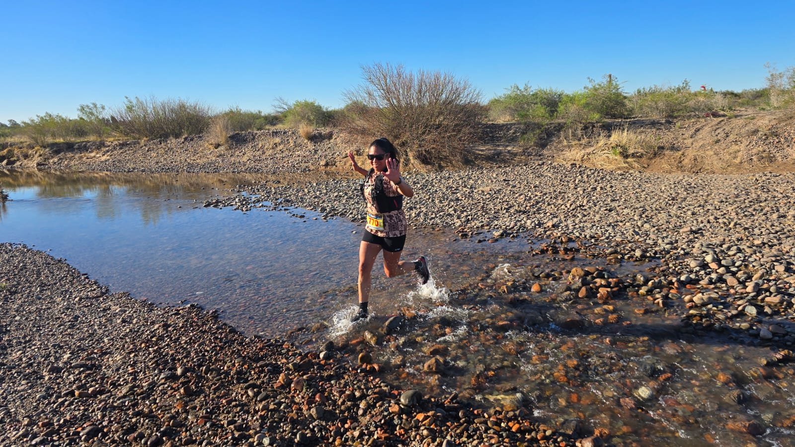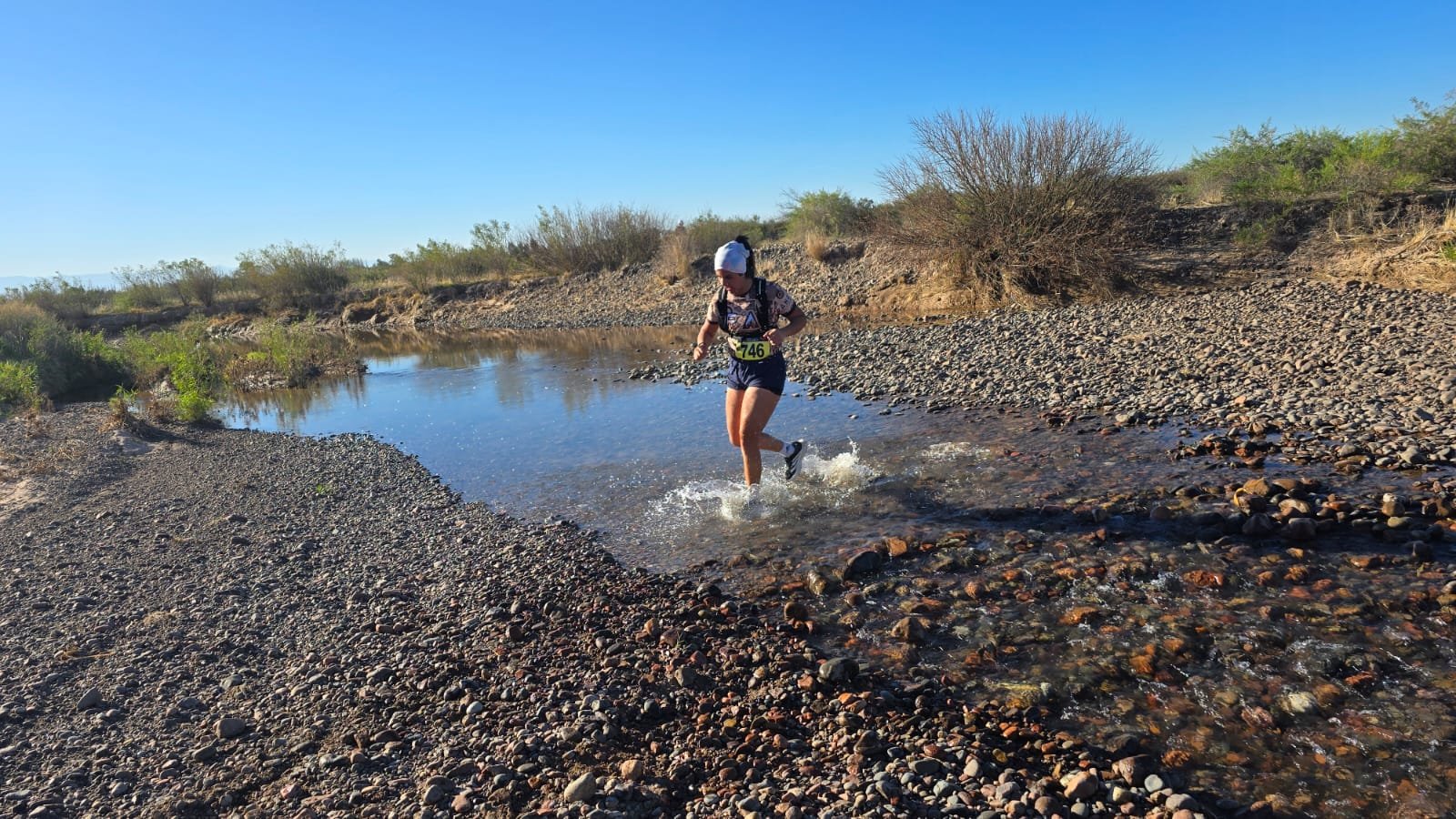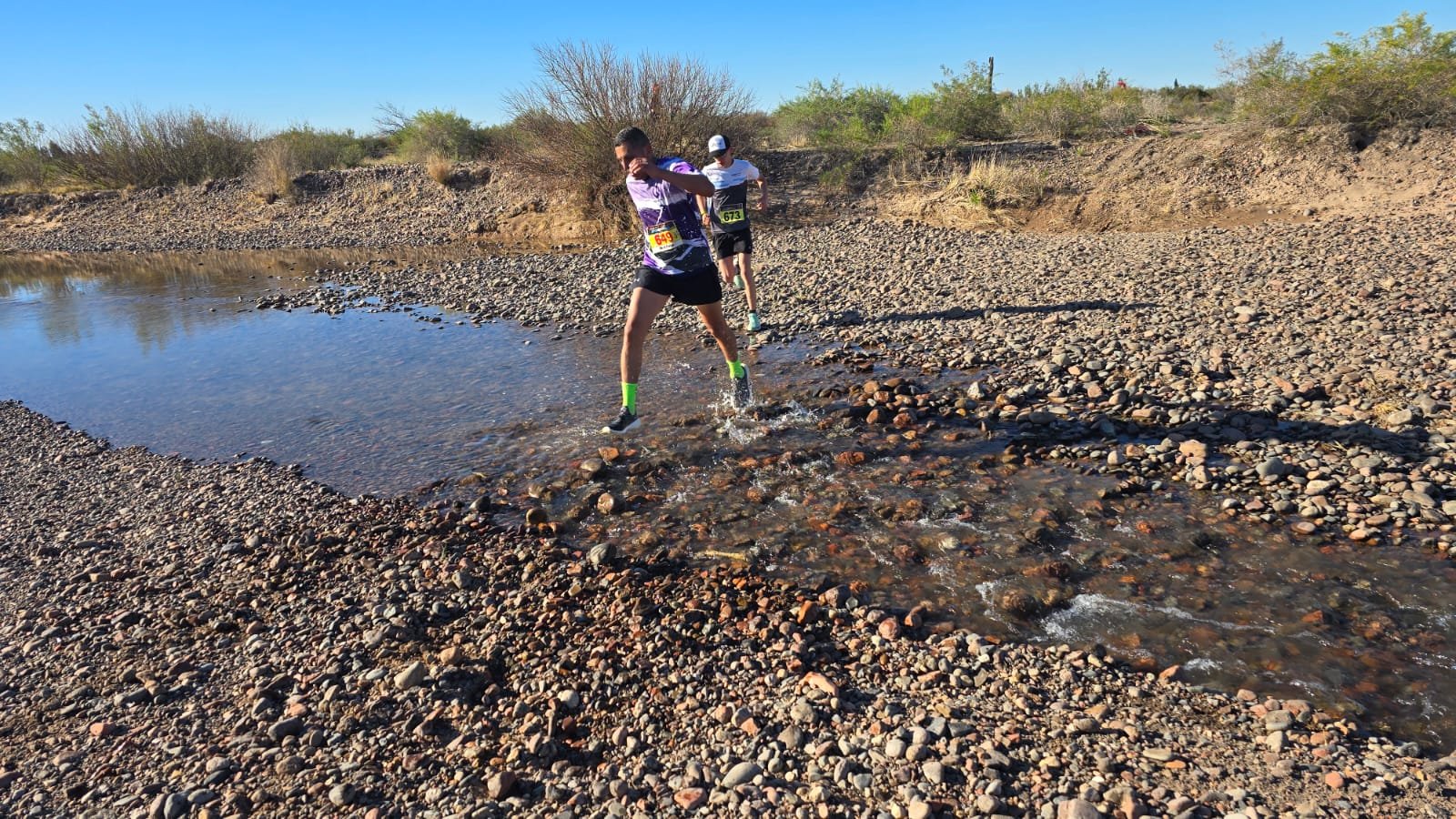 Los runners debieron cruzar algunos brazos del Río Tunuyán.