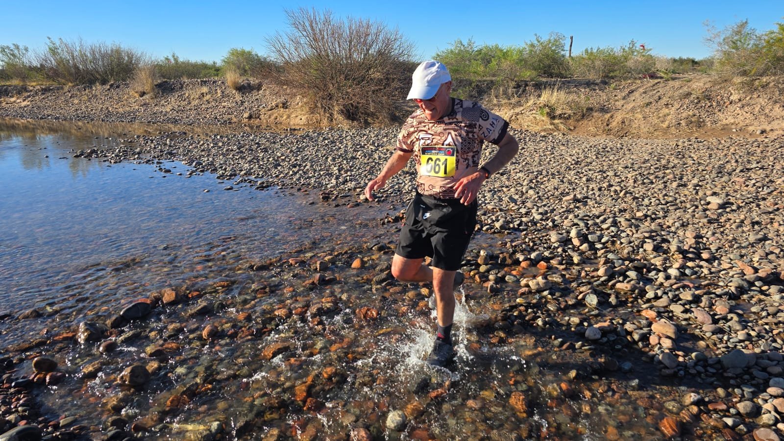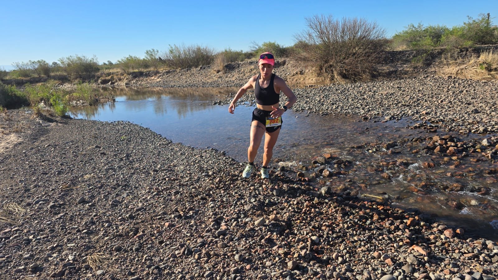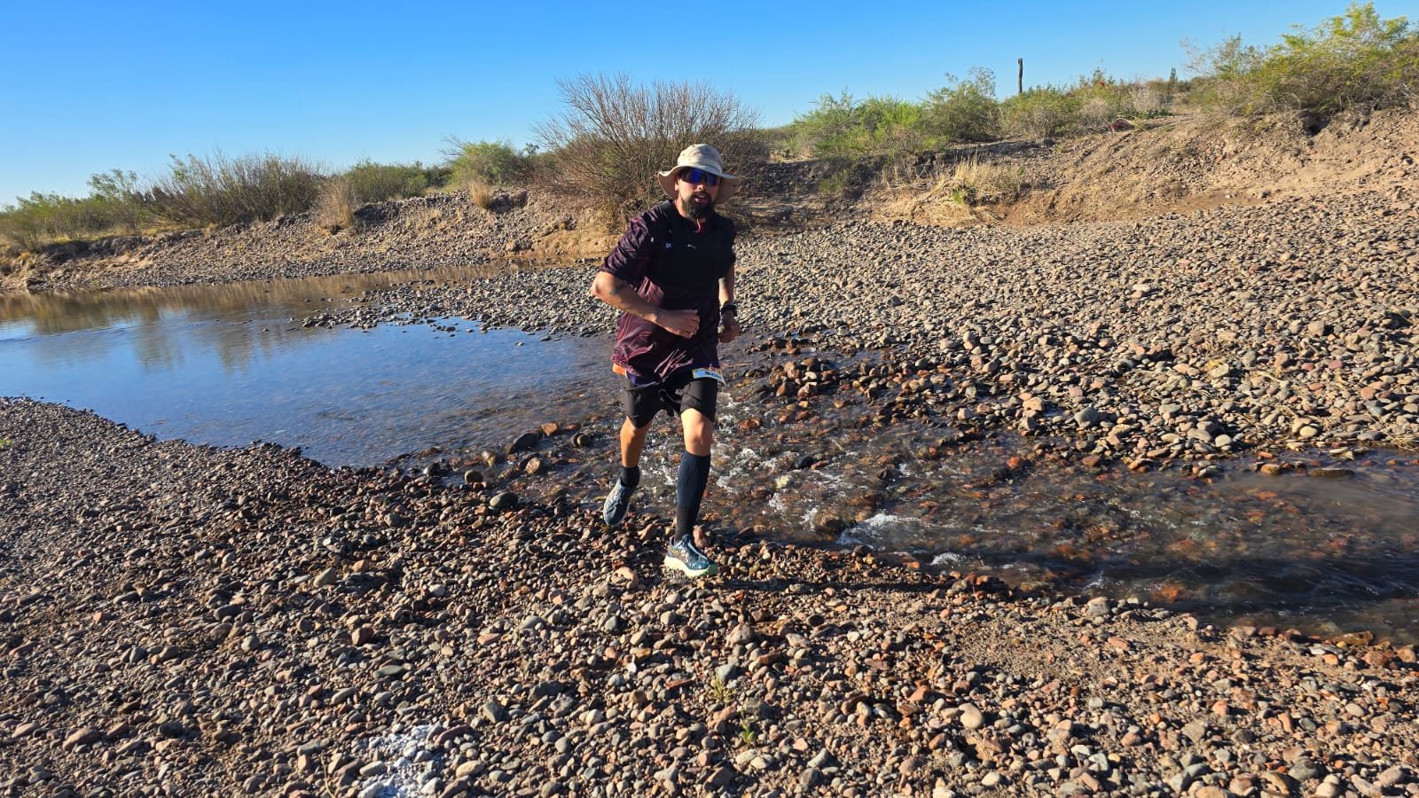 El circuito fue bien de cross: no presentó grandes desniveles, por lo que fue bastante rápido con sectores de senderos muy divertidos porque hubo mucho serpenteo, suelo algo “pesado” para las piernas por la arcilla y las piedras y bastantes cruces de hilos de agua del Río Tunuyán.