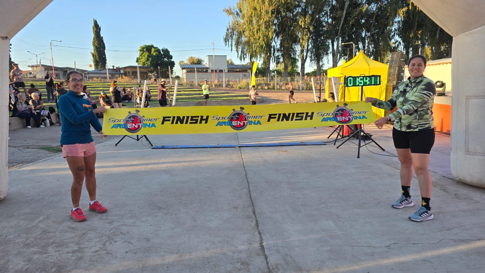 Recepción. Ruth y Érica fueron las chicas que, son una sonrisa de oreja a oreja, recibieron en la meta a todos los runners.