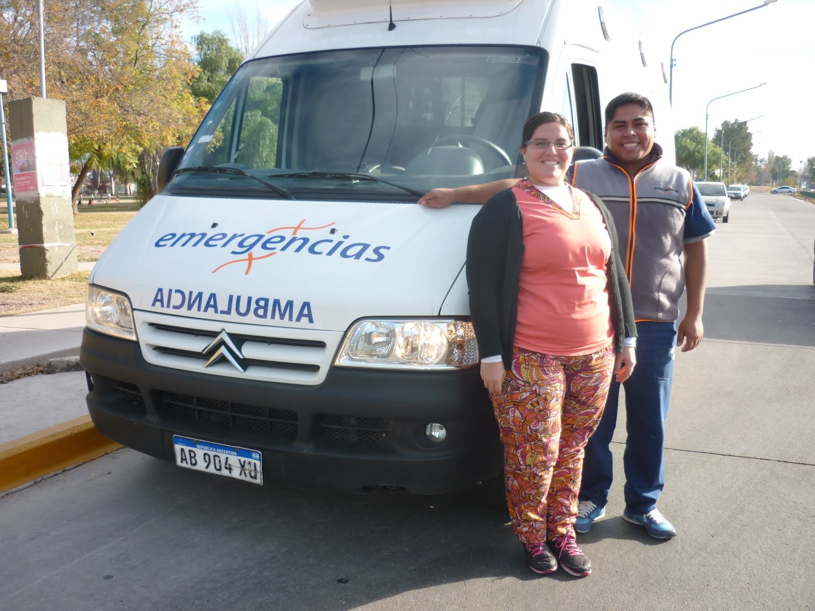 | Cecilia y Mario junto a su ambulancia. Foto: Claudio Pereyra Moos. |