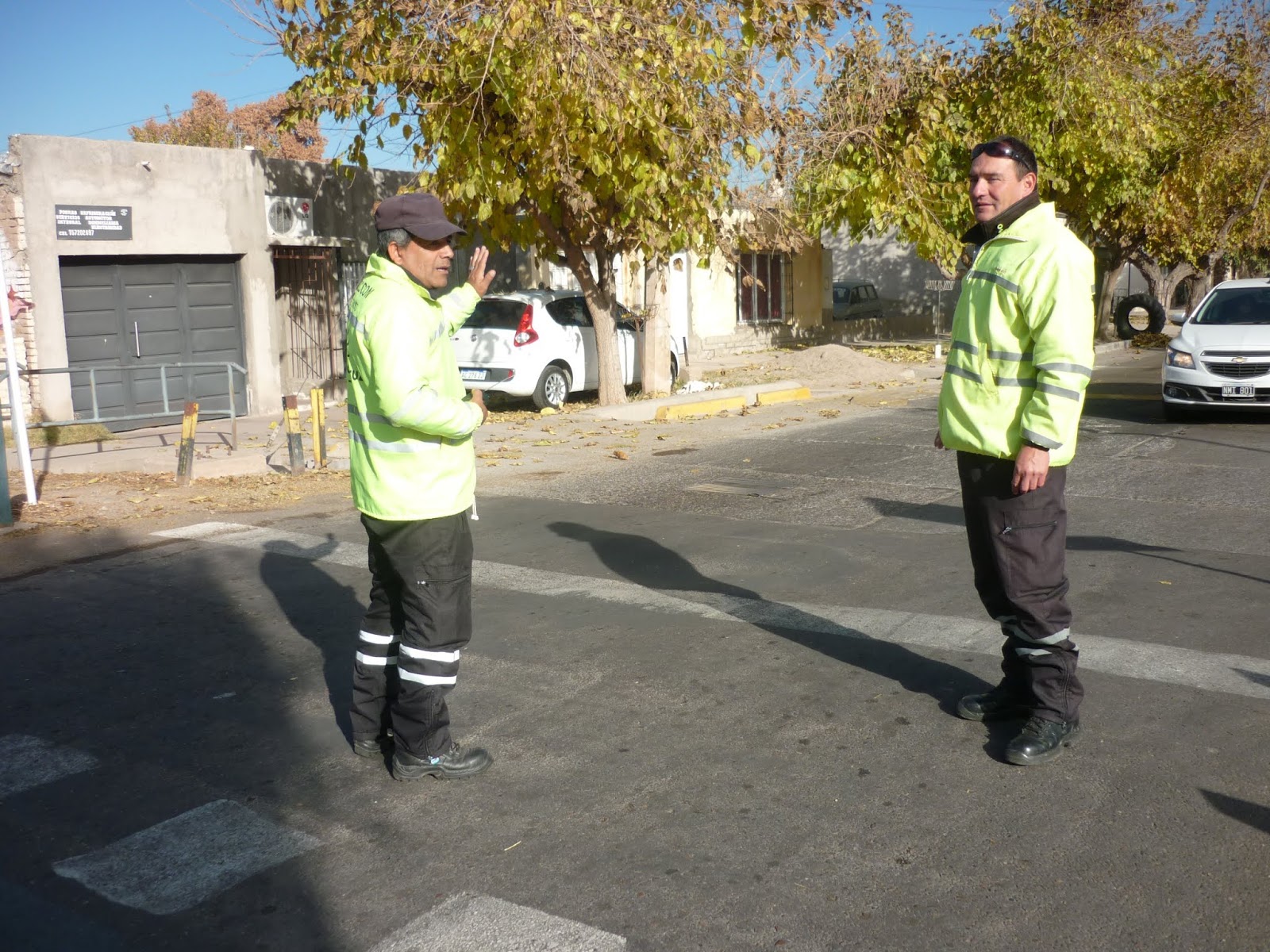 Protectores III. Alfredo Carrera y Sergio Pozo, de la Policía de Tránsito de Godoy Cruz, regularon el tránsito con muchas ganas.