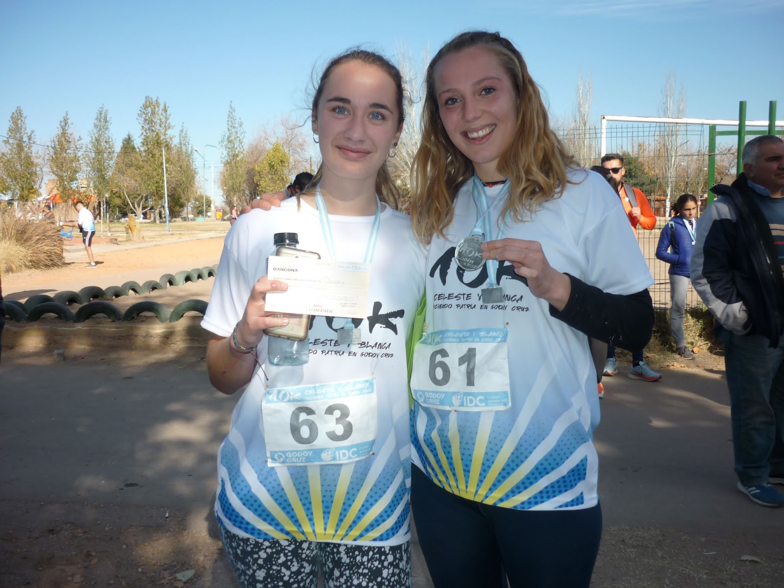 Donar sangre salva vidas. Vanesa Bríccola es una atleta de Rivadavia que hoy salió primera en los 5K femeninos y tercera en la general de dicha distancia con un tiempo de 25 minutos y 20 segundos. Destacamos su perfomance porque es un ejemplo de vida. El año pasado sufrió una grave afección sanguínea que la tuvo al borde de la muerte. Superó el difícil trance gracias a su tenacidad y valentía, valores forjados gracias al deporte, y a la solidaridad de sus vecinos ya que le donaron mucha sangre. Desde ese entonces se propuso apoyar la campaña «Donar sangre es donar vida», slogan que exhibió en la ceremonia de premiación.