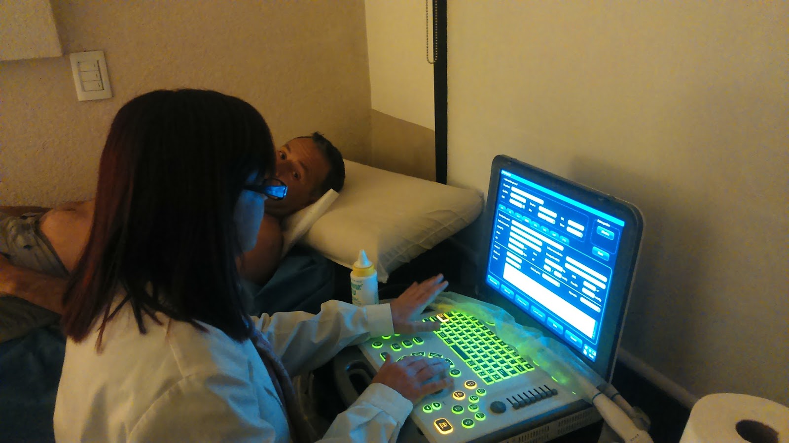| La doctora Marilina Ortega realizando estudios para dar un certificado. |