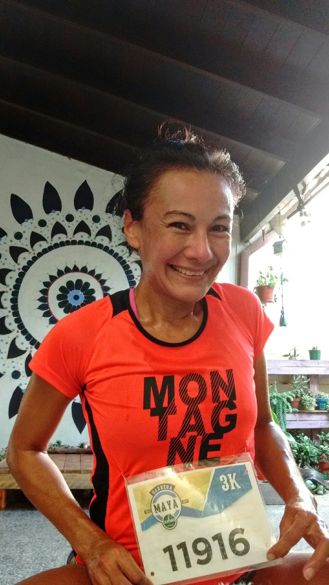 Agradecida. La mendocina Gabriela Bustos corrió en los reducidos espacios de su casa. Pero lo hizo feliz porque pudo participar por primera vez en una competencia virtual, lo cual la llevó a dar las gracias a los organizadores por la invitación.