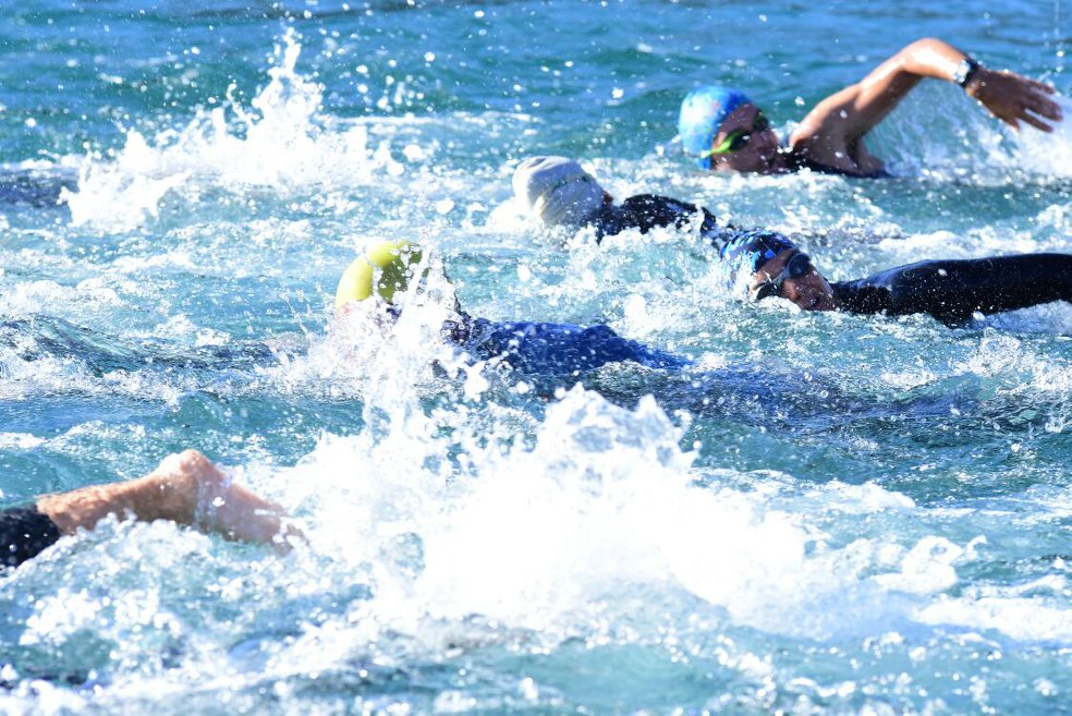 Desde su muelle partieron los triatletas para hacer los 1900 metros de natación, en un circuito de 950 metros que debieron recorrer dos veces.