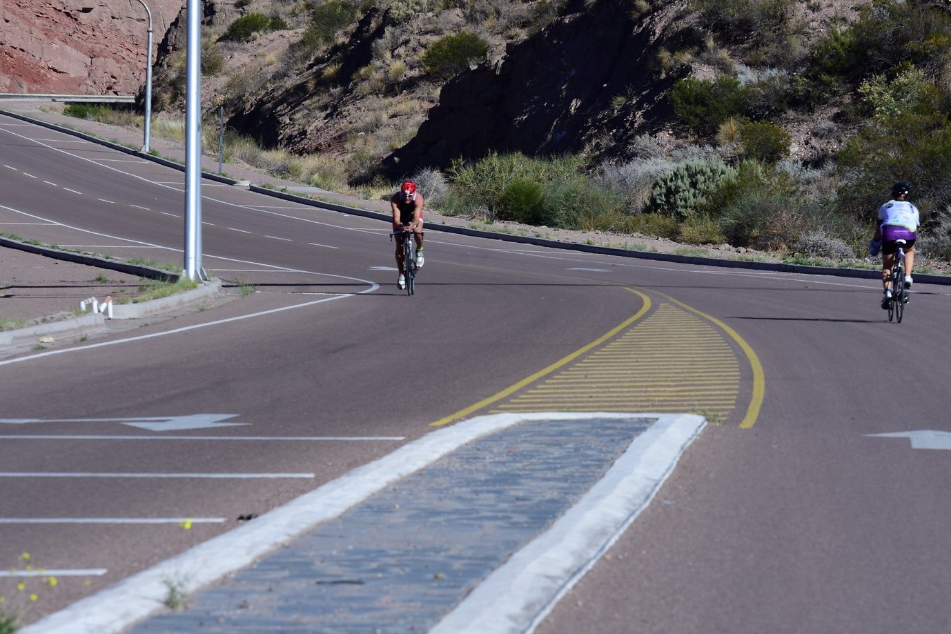 El circuito es muy exigente ya que la parte del nado está marcada por las transparentes pero frías aguas del embalse de Potrerillos. Asimismo, tanto en el tramo de pedaleo como de trote, los desniveles exigen mucho.