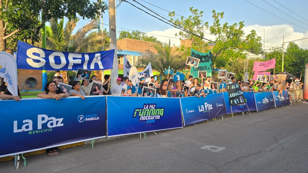 Hinchada. Notable fue la cantidad de gente que se presentó en la largada de La Paz Running Nocturno para alentar a los runners y vivar a las candidatas a reina de la vendimia departamental.