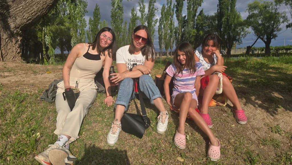 Relax. Aprovechando el hermoso predio de Finca La Azucena, Natalia Videla y Yamila Arrigo tomaron mates en la previa de la carrera.