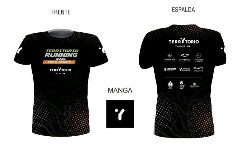 La concesionaria Territorio Yacopini que organiza el clásico del calendario runner mendocino presentó oficialmente la remera que será parte del kit que le corresponderá a cada atleta: es negra con letras principalmente blancas.
