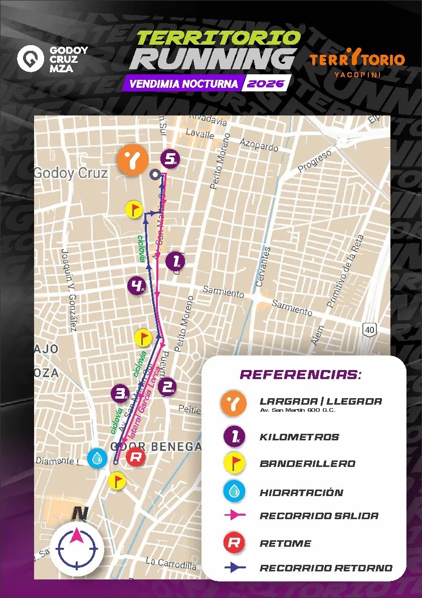 Este clásico del running provincial está organizado por la concesionaria Territorio Yacopini, cuenta con el auspicio de la Municipalidad de Godoy Cruz y su logística es responsabilidad de MLT Eventos.