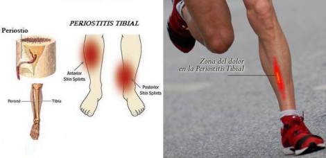 “Causas: uso excesivo y movimientos repetitivos del pie que pueden causar daños en las inserciones de los músculos tibiales (éstos traccionan de la tibia y entonces el músculo lesionado y la cubierta del hueso se inflaman).