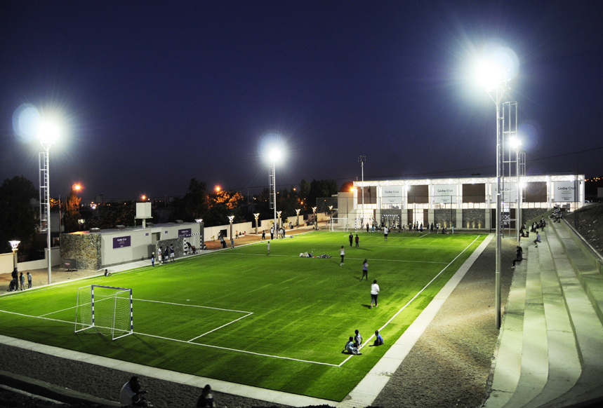 Las instalaciones comprenden una cancha de césped sintético de 1920 metros cuadrados (30x64m), equipamiento y demarcación deportiva.