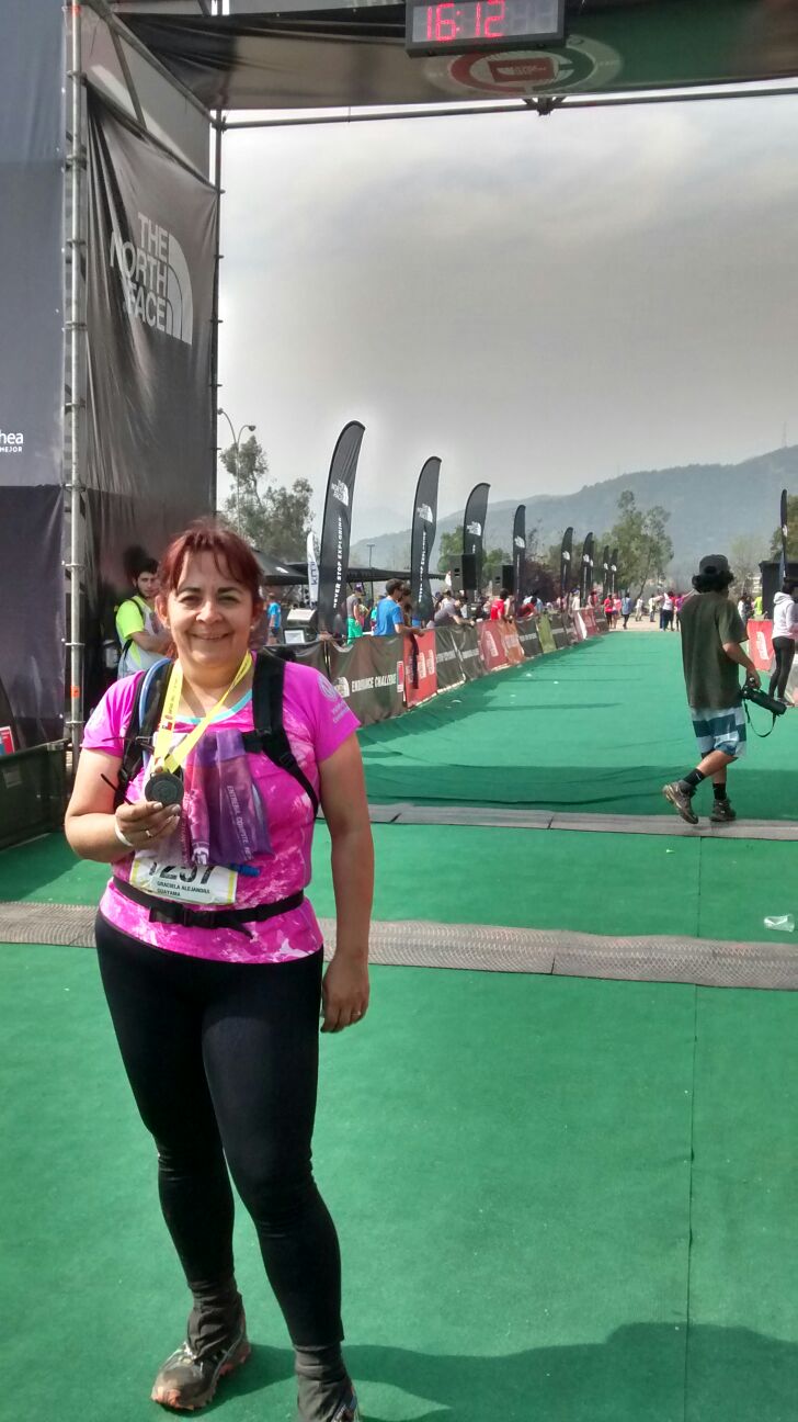 Orgullosa exhibe su medalla finisher.
