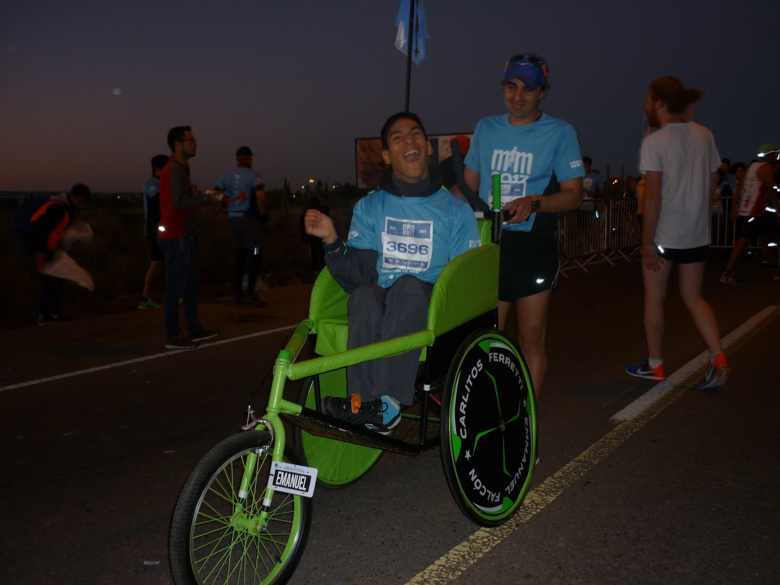 Amigos son los amigos. Carlitos Ferretti es un joven juninense de 25 años, dueño de una fábrica de pastas que le sirve como medio de subsistencia. En los pocos momentos que su trabajo le permite, entrena duro por las calles y carriles de su “pueblo”. En la carrera “La Paz Nocturna”, del departamento homónimo, en 2016, conoció a Emmanuel Falcón, un joven de 21 años que sufre de parálisis cerebral. Carlitos, conmovido, apenas vio a Emma se imaginó fabricándole “una silla de ruedas especial para hacerle sentir que corría.