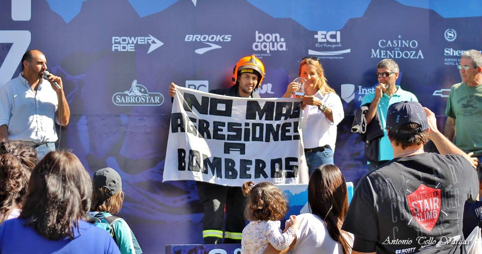 Apagando las llamas de la violencia. Aldo Soto es un bombero chileno de la localidad de Peñaflor, sita en la periferia de Santiago. Ayer corrió los 10K con su equipo completo que, en total, pesa alrededor de 23 kilogramos. Además lo hizo portando una bandera que rezaba “No más agresiones a bomberos”. En este sentido, explicó que lo hace en el marco de una campaña “que decidí llevar adelante porque en muchos lugares los bomberos somos atacados por inadaptados cuando vamos en socorro de alguien”. Así, con un sencillo y sentido proceder pacífico, Aldo porta un mensaje de paz ¡Siguiendo el ejemplo de Gandhi!