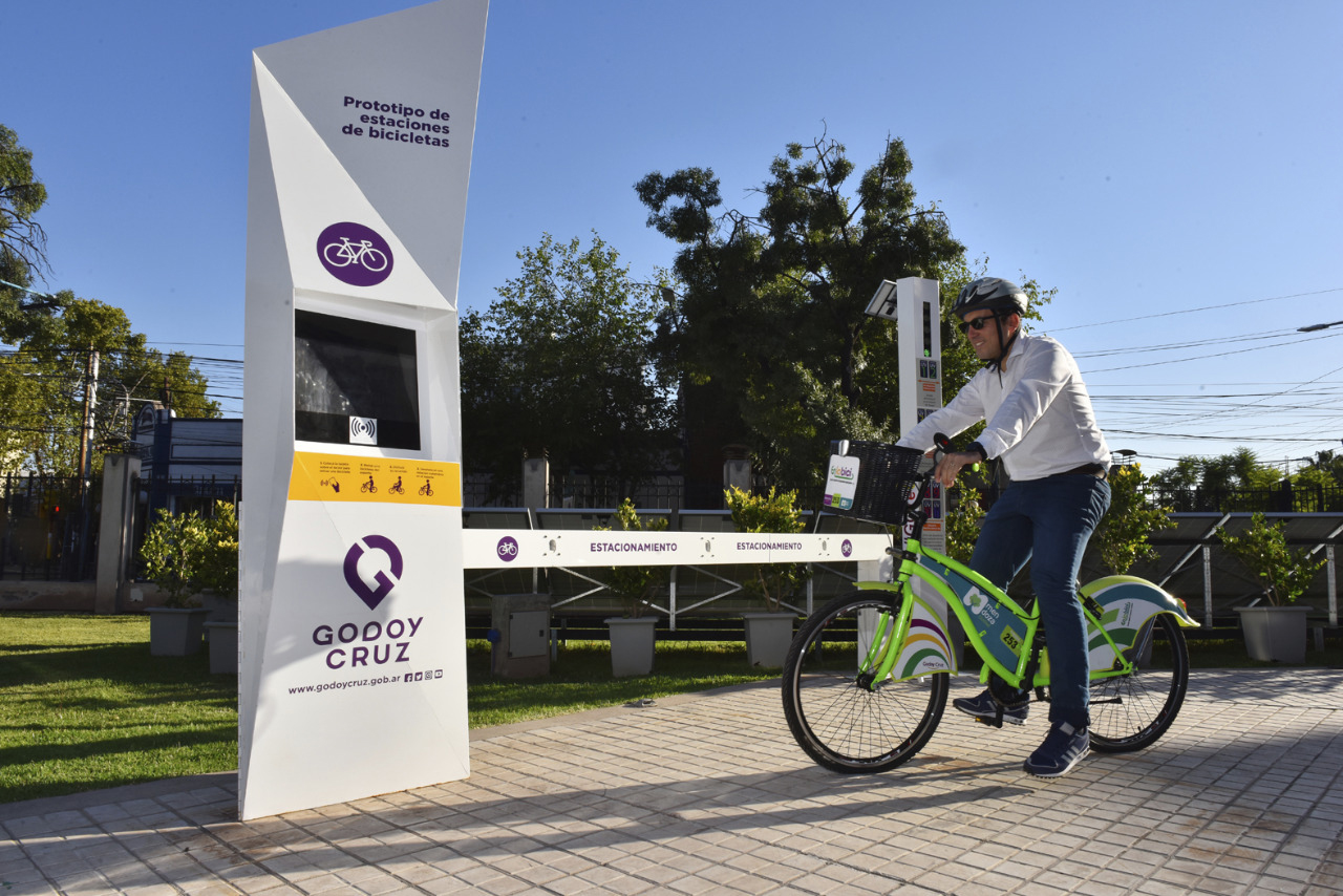 La comuna de Godoy Cruz presentó el flamante prototipo de estación automática de bicicletas.