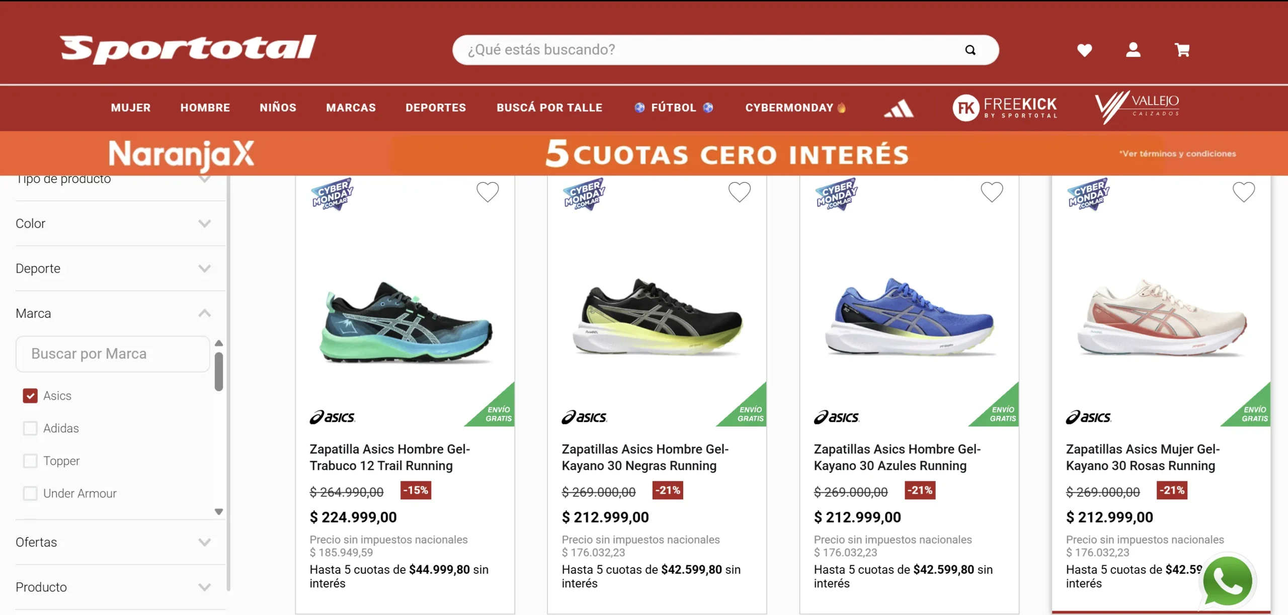 Eso sí, los más de 150 modelos que Sportotal subió a CyberMonday tienen un común denominador: jugosos descuentos y promociones que, con determinadas tarjetas de crédito, podés sacar hasta en seis cuotas sin interés.