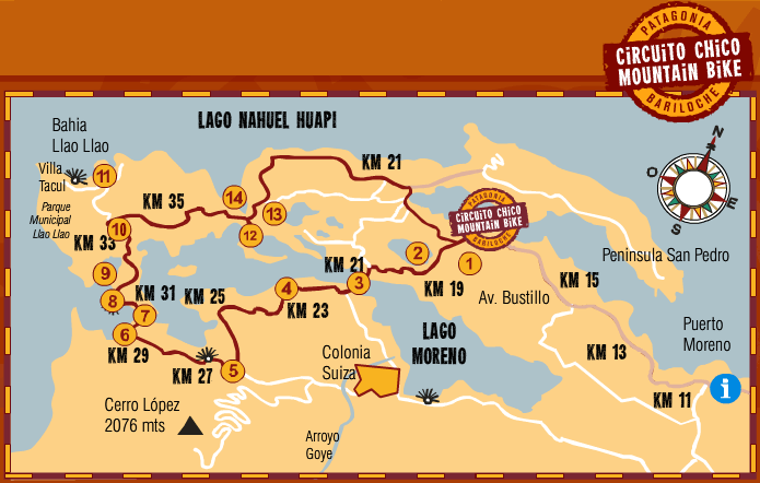 Mapa del Circuito Chico de Bariloche.