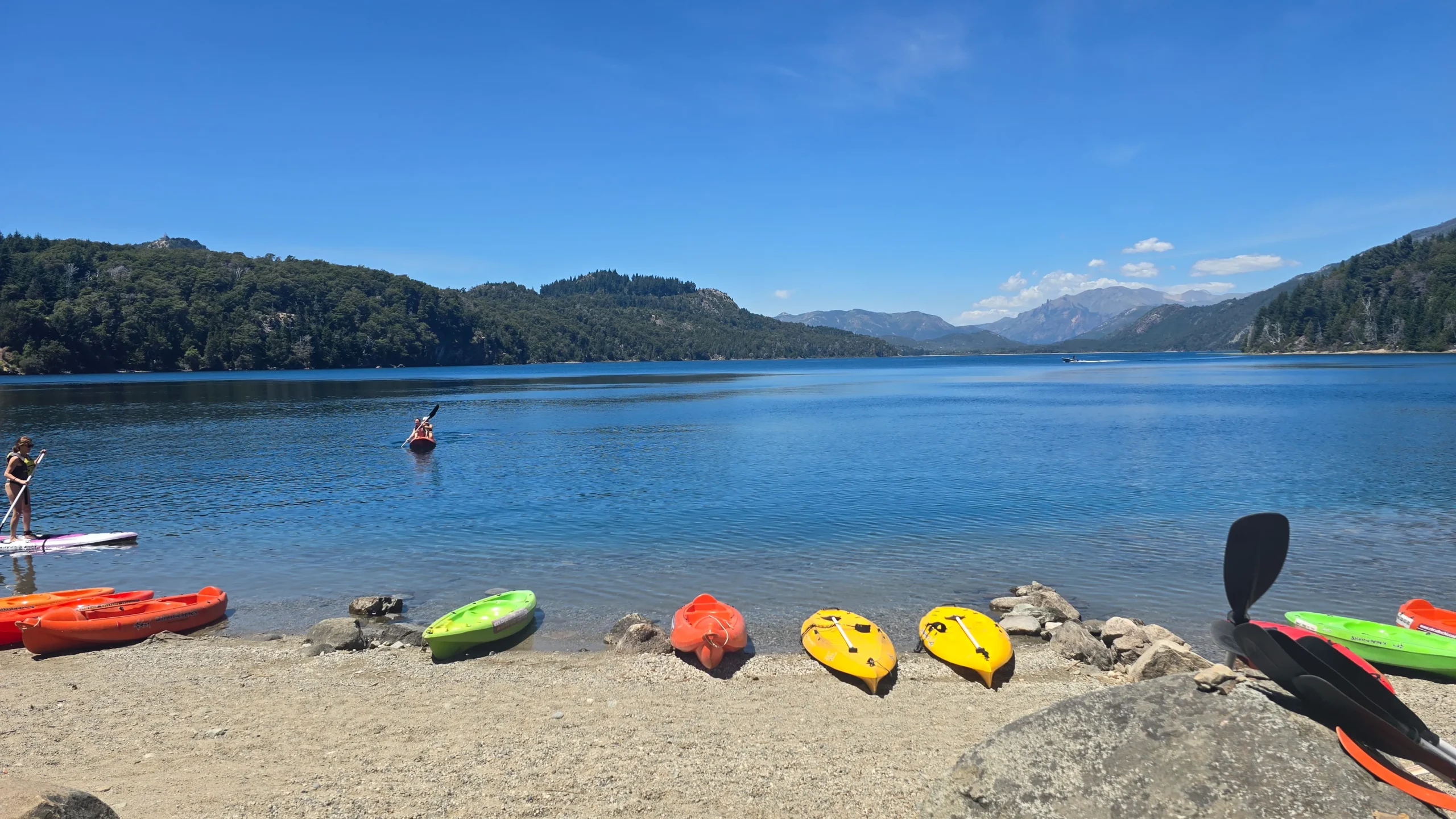 El recorrido dura unas 4 horas si estás en una buena condición física, por lo que te recomendamos que vayas bien equipado con mucha hidratación. No obstante, durante tu viaje a puro pedal, también podrás parar en los múltiples bares y food trucks sitos a la orillade la ruta, inclusive podés comer en el Hotel Llao Llao si tenés aspiraciones más altas. Si tu plan es de aún más relax, a los 3 km del circuito hay un montón de empresas que te ofrecen hacer kayak sobre el Lago Perito Moreno (altamente recomendable porque nosotros hicimos eso).