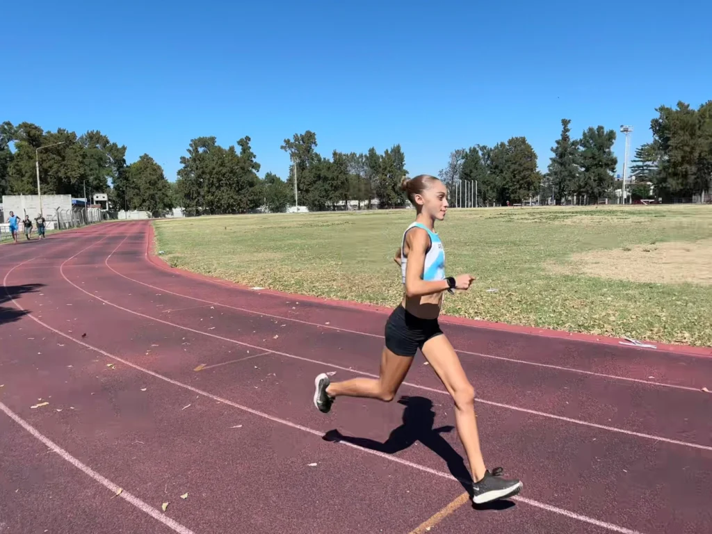 Tiene 15 años —cumple 16 el 25 de marzo— y ya rompió un récord argentino U20 que llevaba más de cuatro décadas vigente. Actualmente se ubica en el top 10 mundial U18 en 3.000 metros. Encabeza el ranking sudamericano en U18 y U20. Y, sin embargo, cuando recuerda el momento en que le confirmaron que había logrado el récord nacional, sonríe con timidez: “Me dieron ganas de saltar ahí mismo, pero me contuve. Estaba muy contenta”.