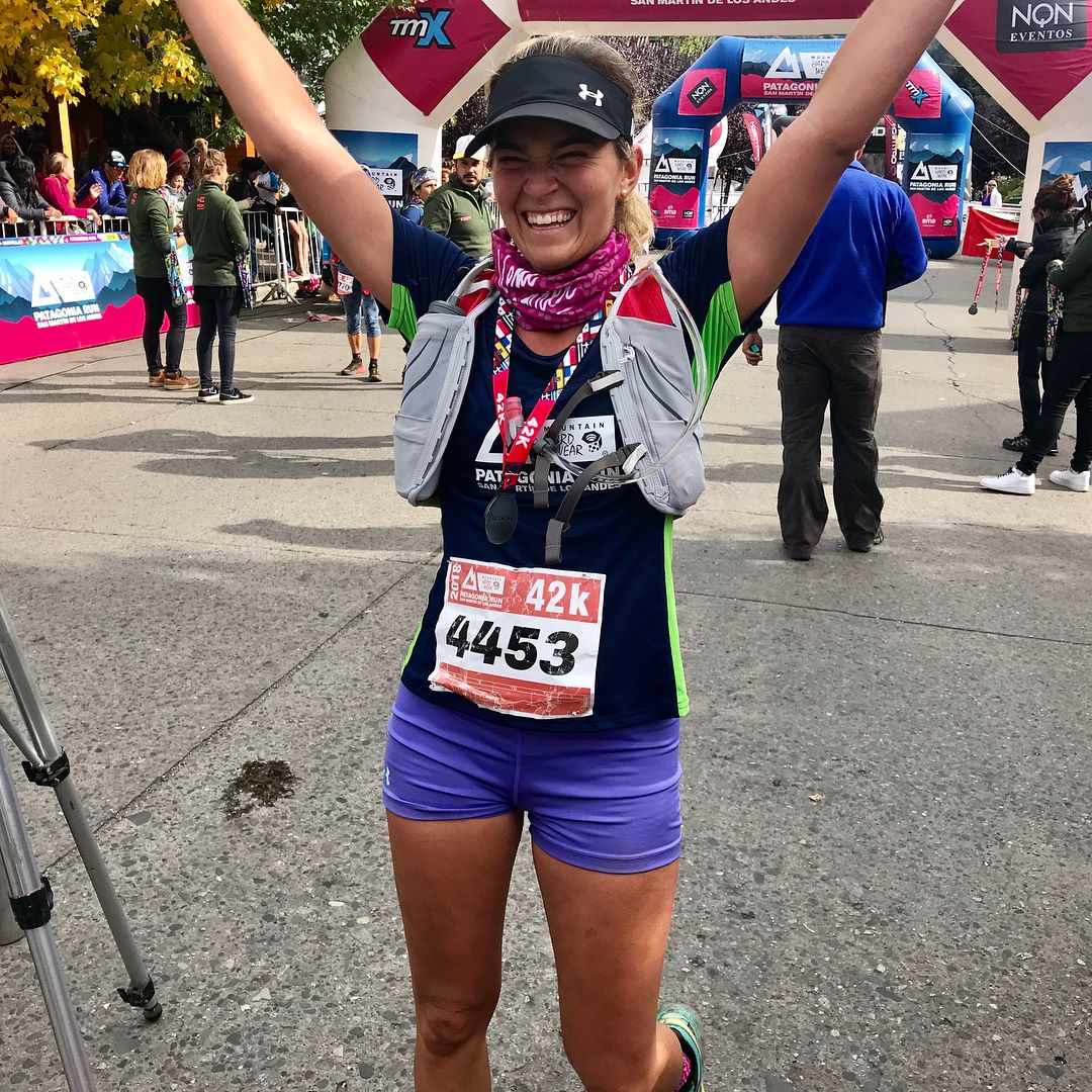 | Marina de Lucca luego de traspasar la meta. Foto: Facebook, gentileza Corredor Promedio. |
