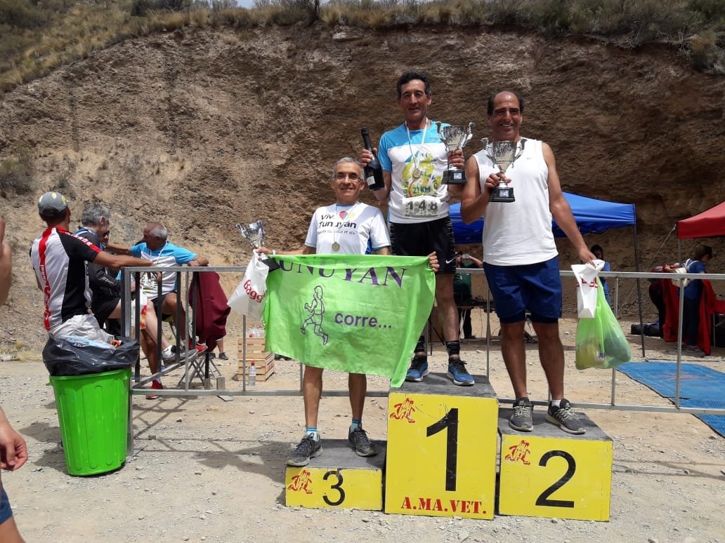 Una costumbre de las carreras mendocinas: Héctor Villegas en lo más alto del podio en su categoría por edad. Foto: Facebook.