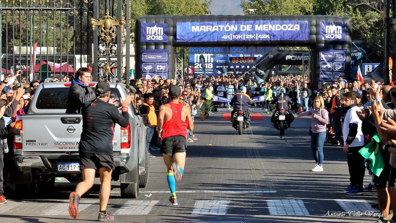 En la maratón, hasta el kilómetro 29, aproximadamente, el pelotón de punta estuvo conformado por el pampeano Alfredo Aguirre, el sanrafaelino Cristian Mohamed y el santafesino Nicolás Ternavasio.