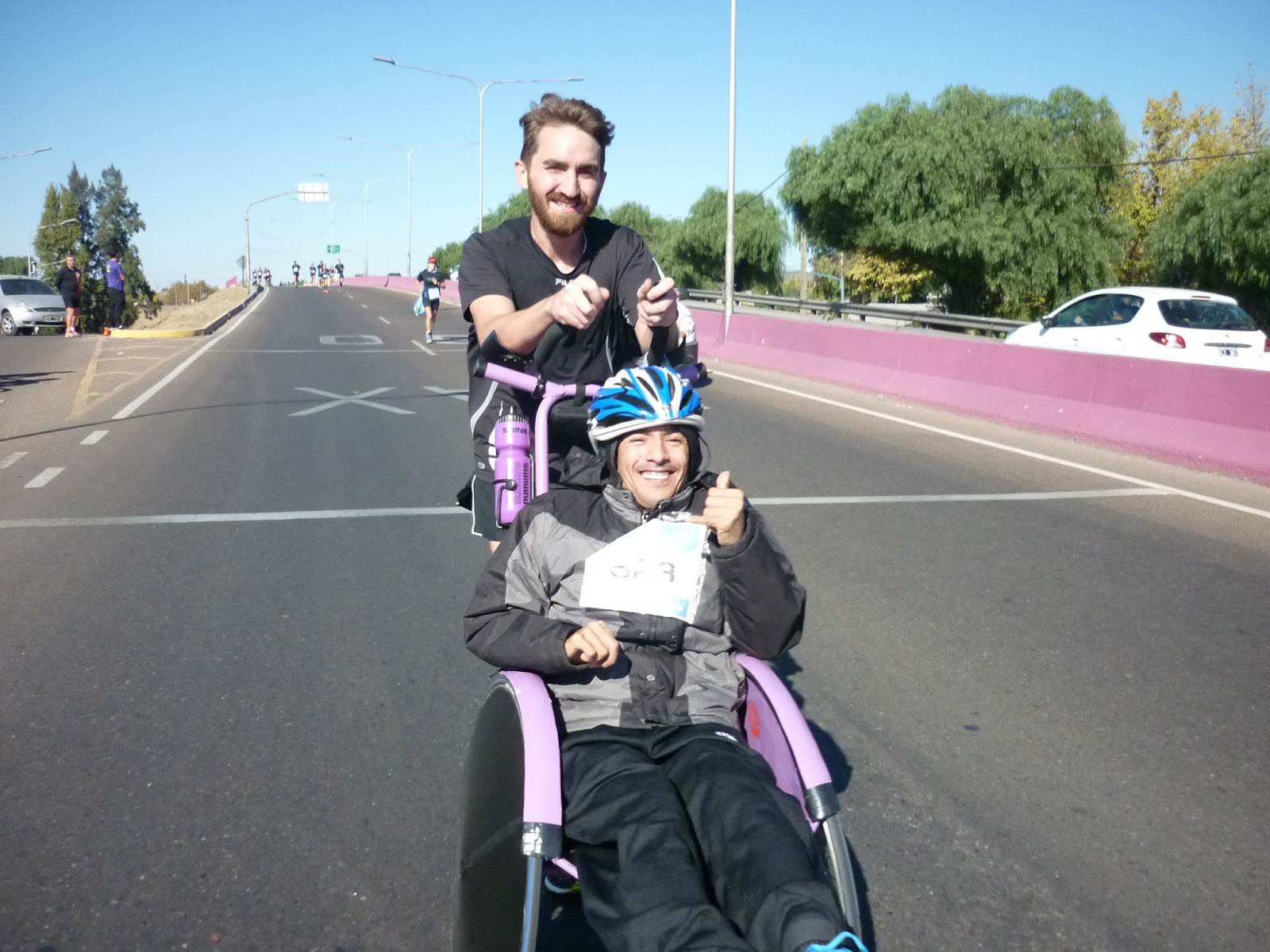 En 10K, Emanuel De Castro acompañó en su silla de ruedas a Emmanuel Falcón, quien también padece de parálisis cerebral. Fue reconfortante contemplar la felicidad de libertad que tenía Emmanuel cuando era llevado por su compañero a lo largo de la carrera.