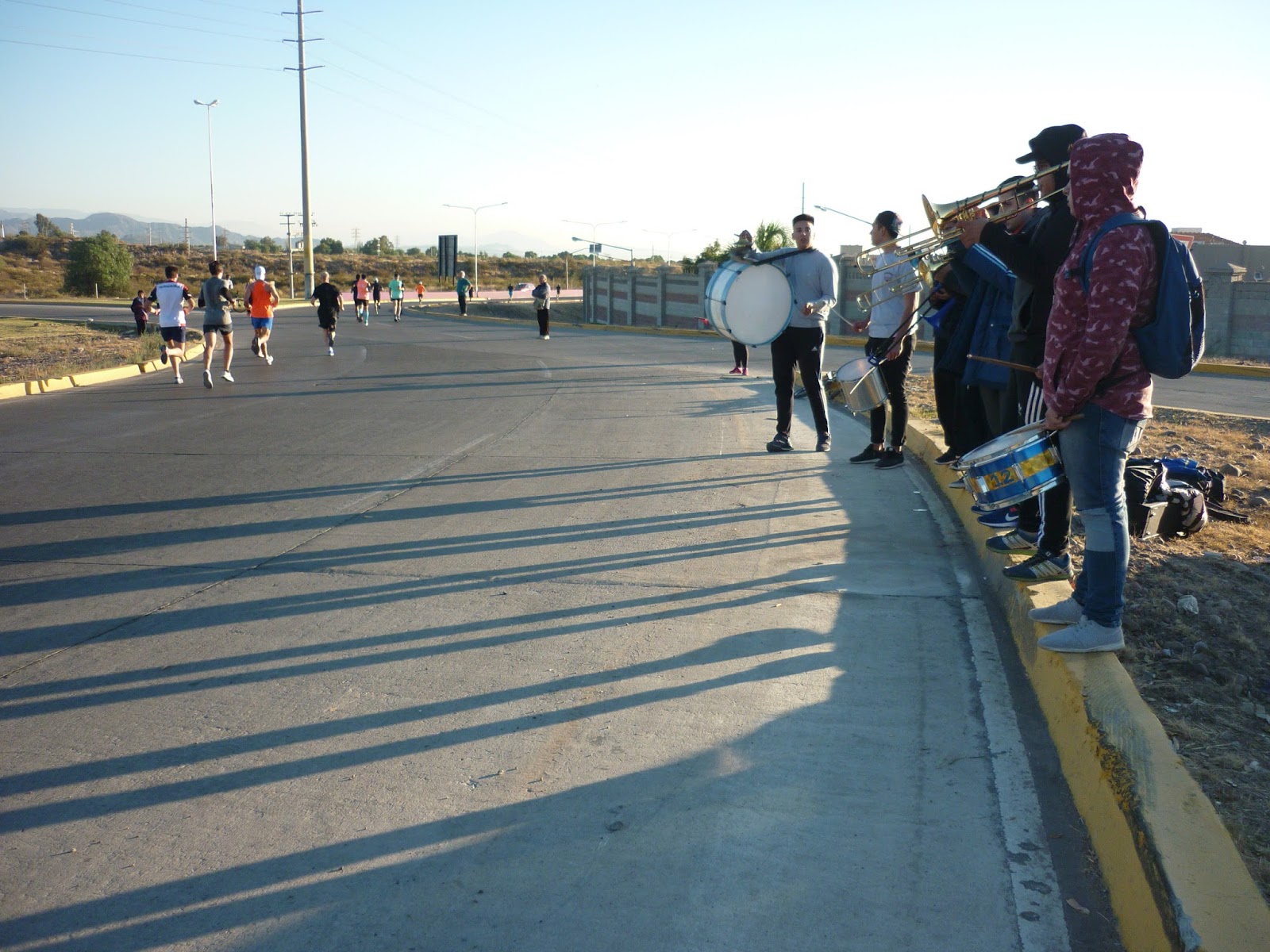 | La banda A Todo Ritmo alentaba a los corredores en el Corredor del Oeste, cerca del barrio Palmares. |