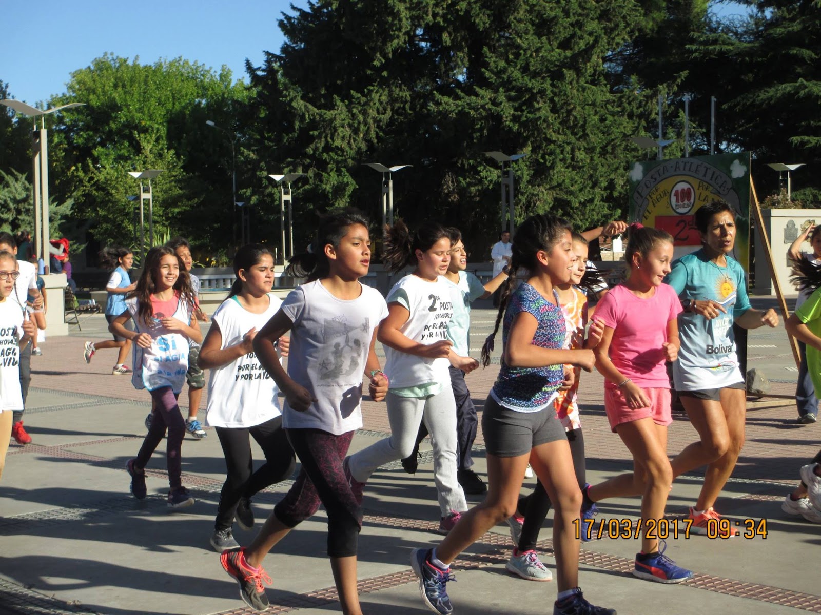| Los atletas corrían con sus consignas alrededor de la plaza departamental. |