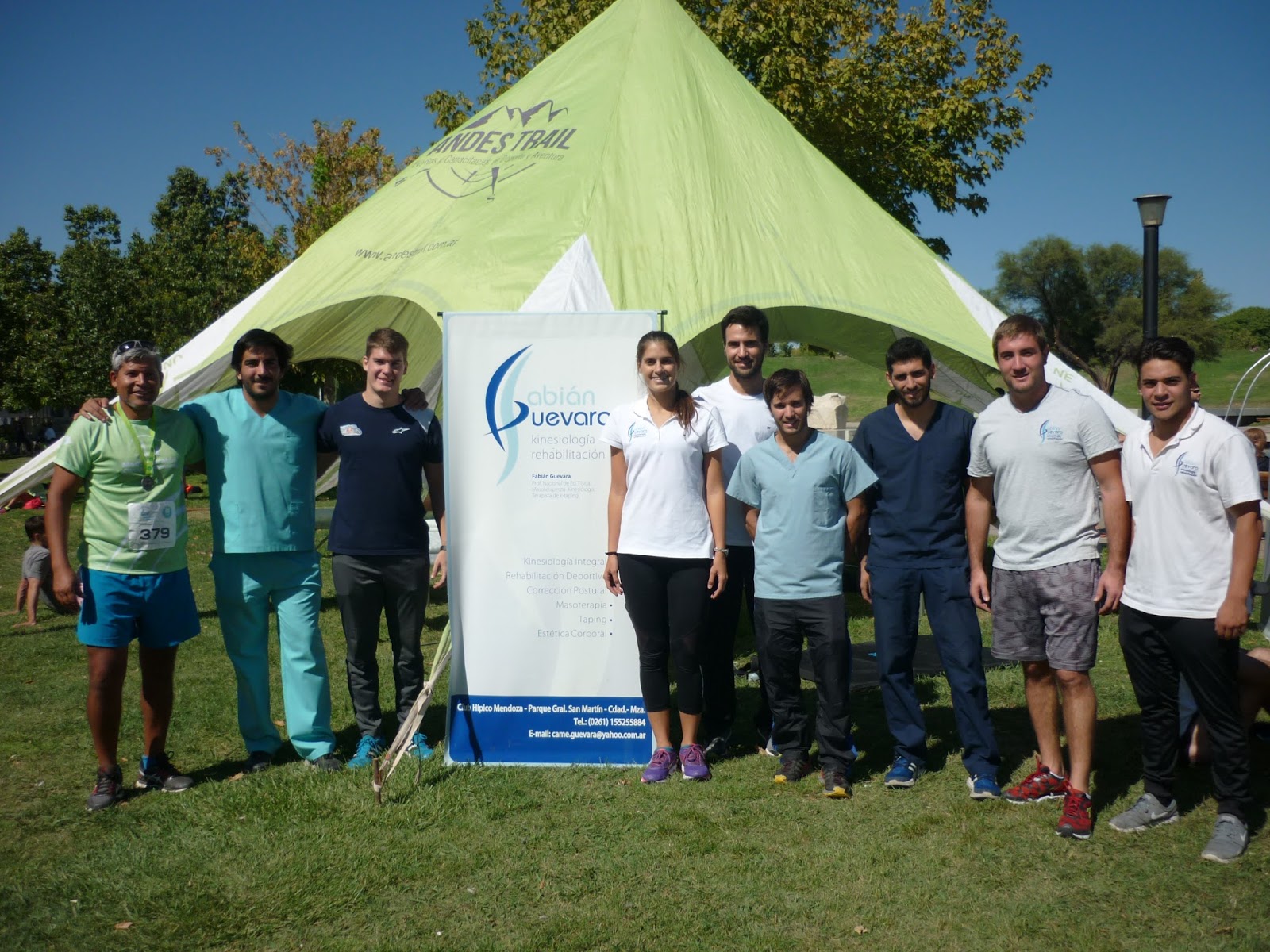 El kinesiólogo Fabián Guevara se hizo presente con su equipo de profesionales para ayudar a elongar a los atletas luego de la carrera. Aprovecharon la carpa de Andes Trail. Foto: Claudio Pereyra Moos