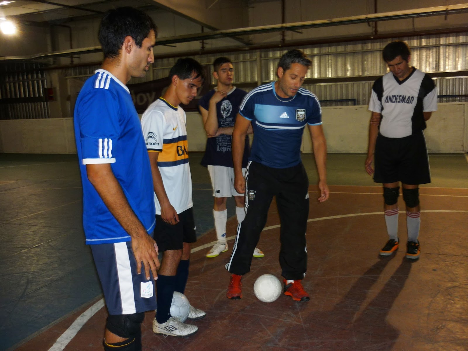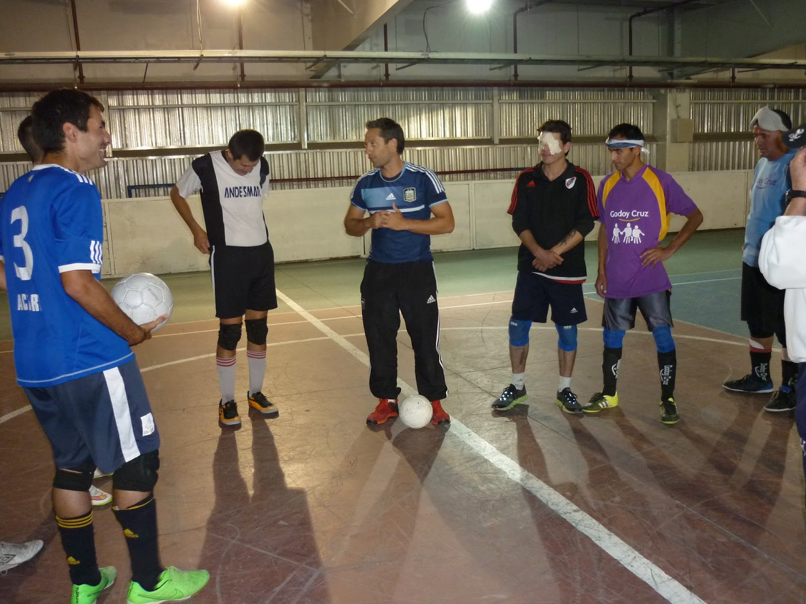 Allí, en horas de la tarde, dictó la clínica de fútbol para jugadores no videntes de Mendoza.