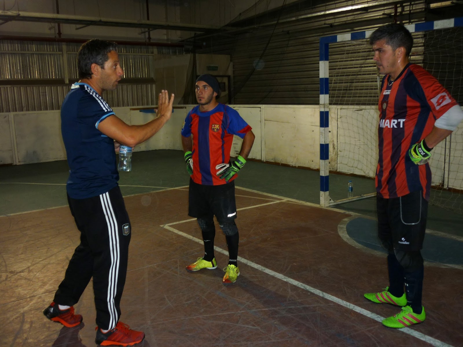 Luego, corriendo, Martín salía disparado hacia uno de los arcos a dar más explicaciones y enseñanzas, en este caso a los goleros presentes de Municipalidad de Godoy Cruz-Uniredes.