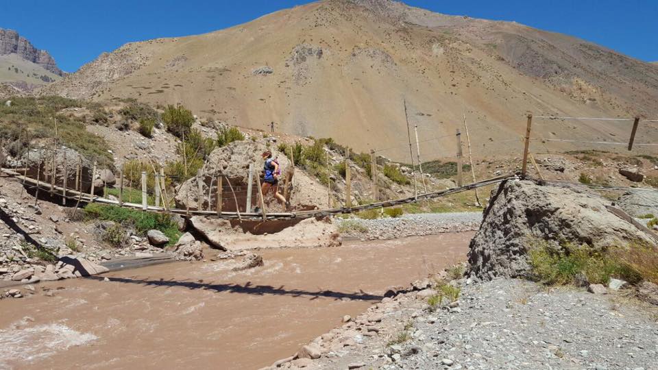 | Los trail runners de los 70K atravesaban el río Mendoza por este puente colgante para dirigirse a la Quebrada de Vargas. |